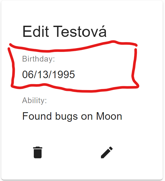 Popis: Napsání nenumerického znaku do pole Birthday v edit modu