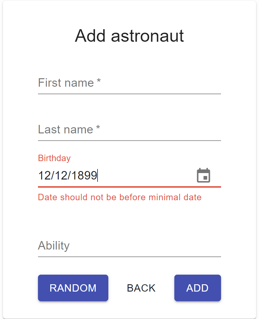 - Klikl jsem na tlačítko random u přidávání astronauta a nic se nestalo.